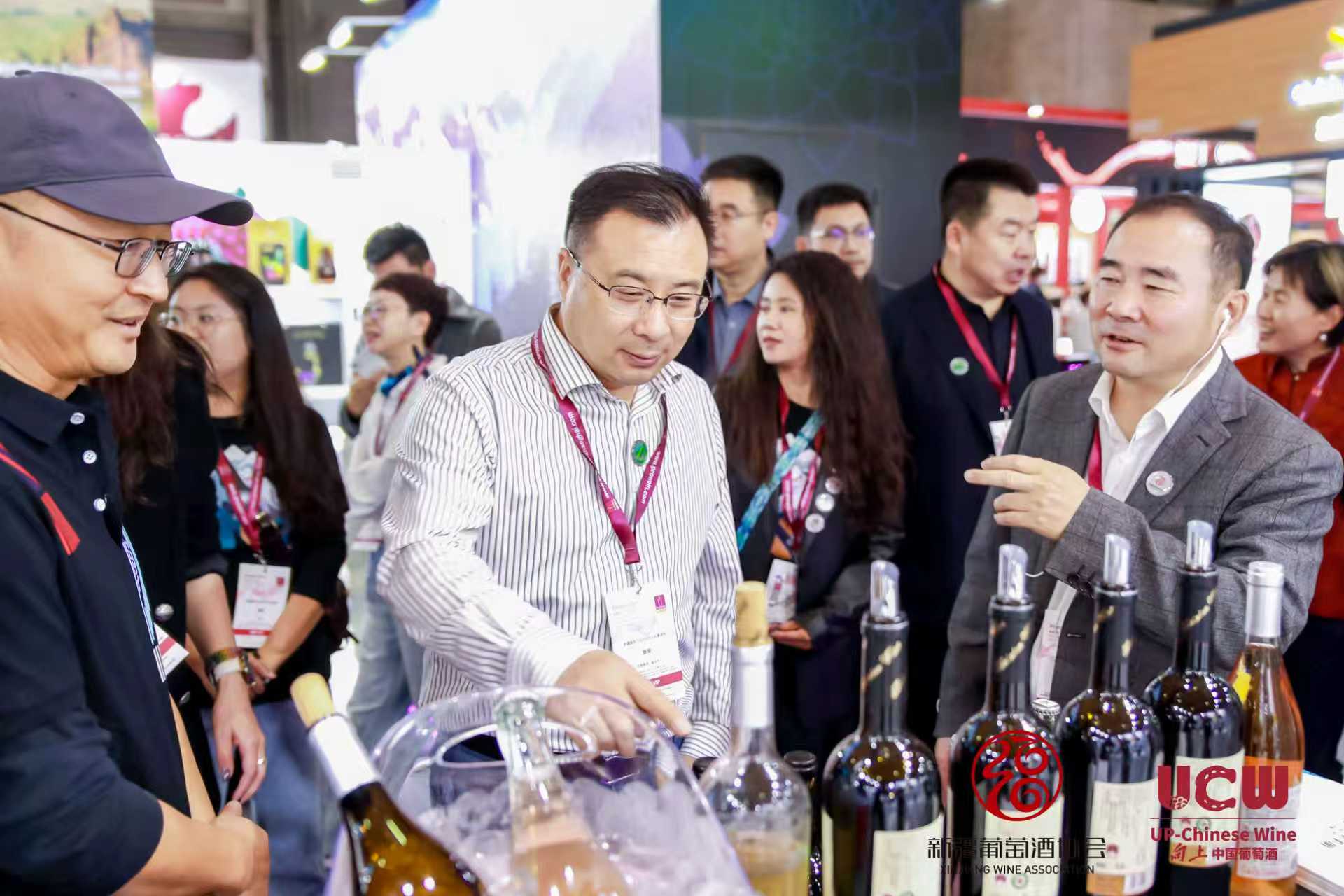新疆维吾尔自治区林业和草原局党委委员、副局长张华同志、新疆葡萄酒协会苏斌会长,自治区林科院研究人员一行亲临展会现场,在天山北麓产区张旭东秘书长,巴州林业草原局王永安书记,巴州葡萄酒协会党支部书记、会长/天塞酒庄庄主陈立忠,新疆葡萄酒协会副理事长/丝路酒庄庄主李勇,UCW主理人钟婉黟的陪同下,分别跟各酒庄负责人和现场来宾进行了充分交流。新疆的展位面积从2024年130平米增加到2025年160平米,参展企业从21家激增到29家,足以说明新疆政府对葡萄酒产业,对参与行业盛会【ProWine上海展】的重视,同时对【UCW向上中国葡萄酒】平台的策划执行工作给予了充分的肯定和赞许。